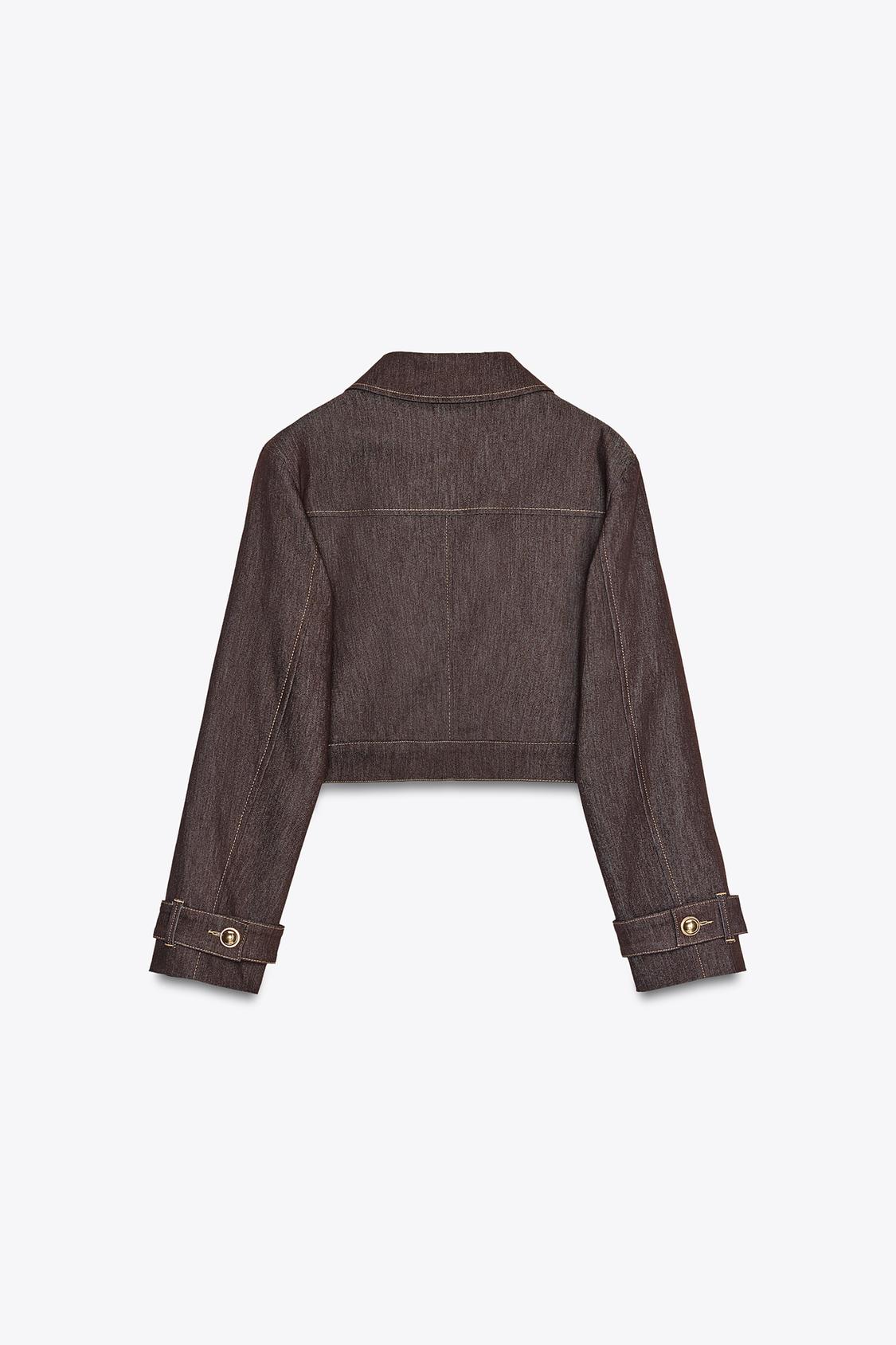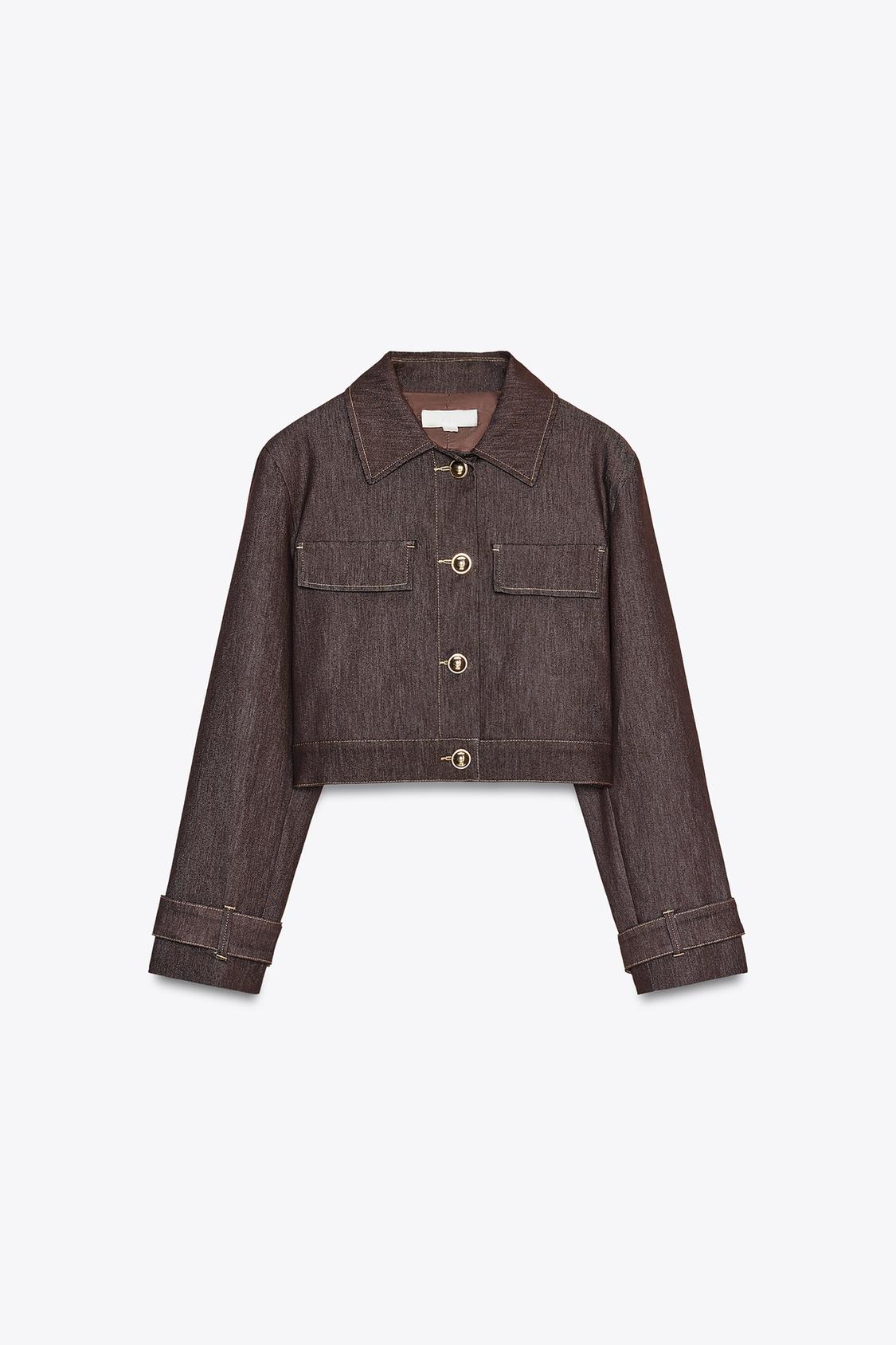 Krótka kurtka i spodnie z wysokim stanem tworzą razem pewny siebie, kobiecy look.
