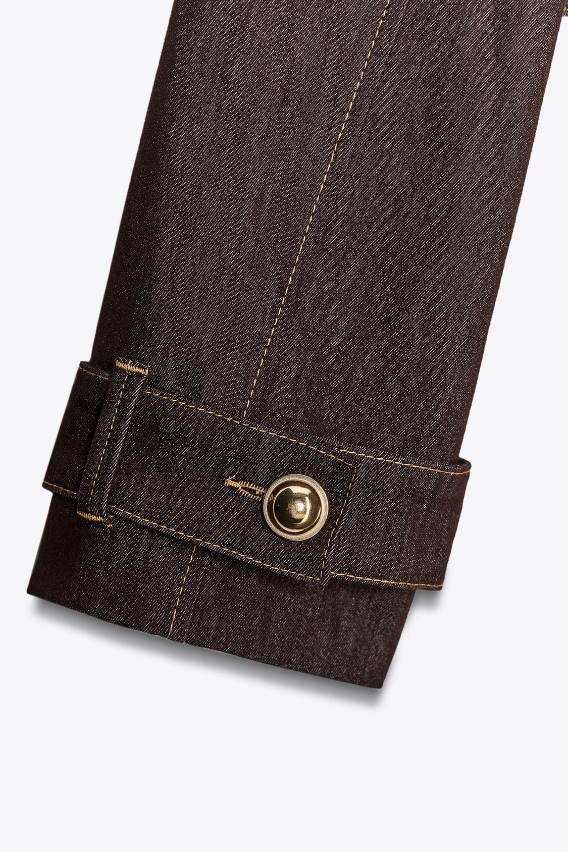 Zestaw Alessia Denim łączy w sobie szlachetne detale, takie jak złote guziki, precyzyjne szwy i krój podkreślający sylwetkę. To nowoczesna ikona, której nie może zabraknąć w żadnej garderobie.