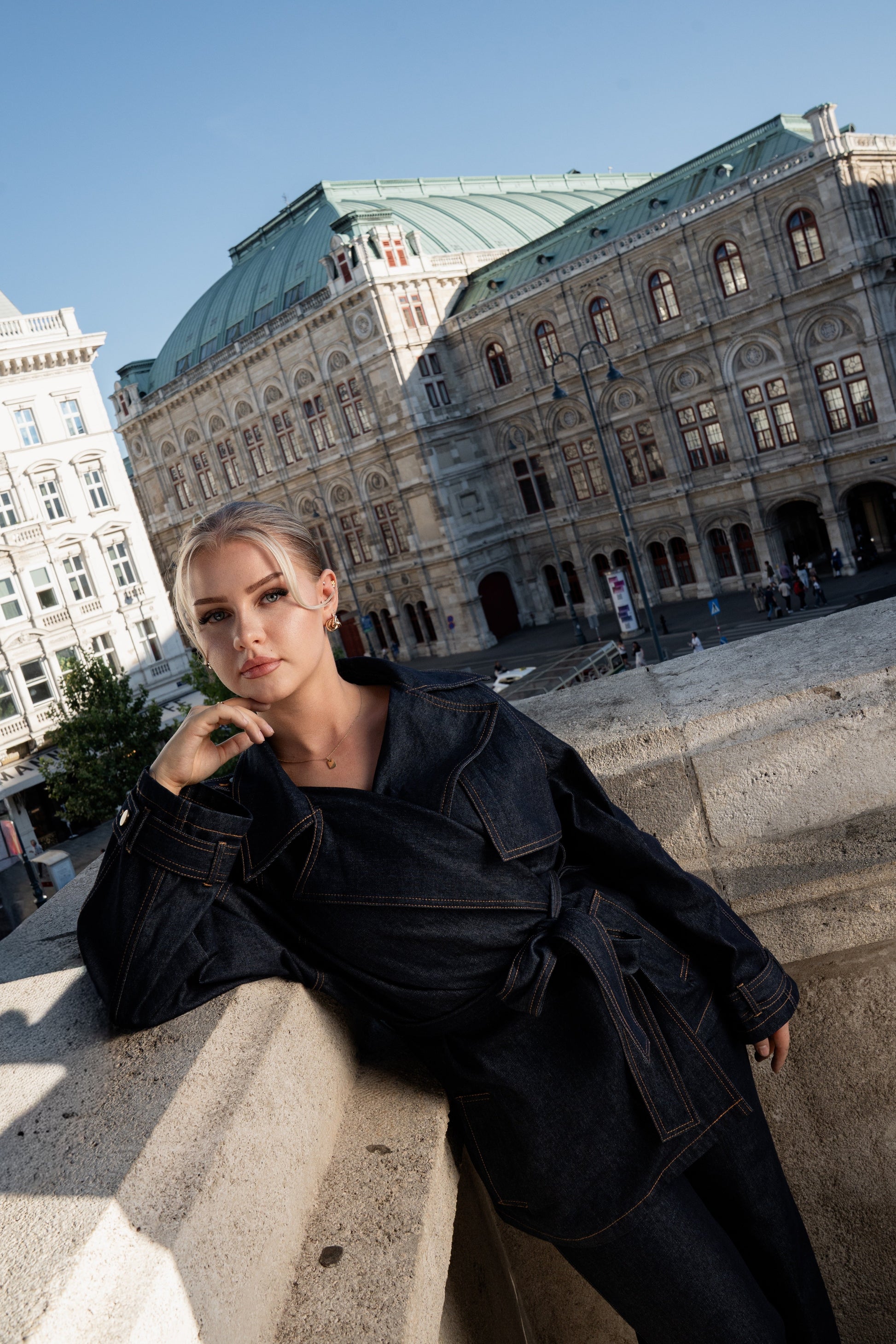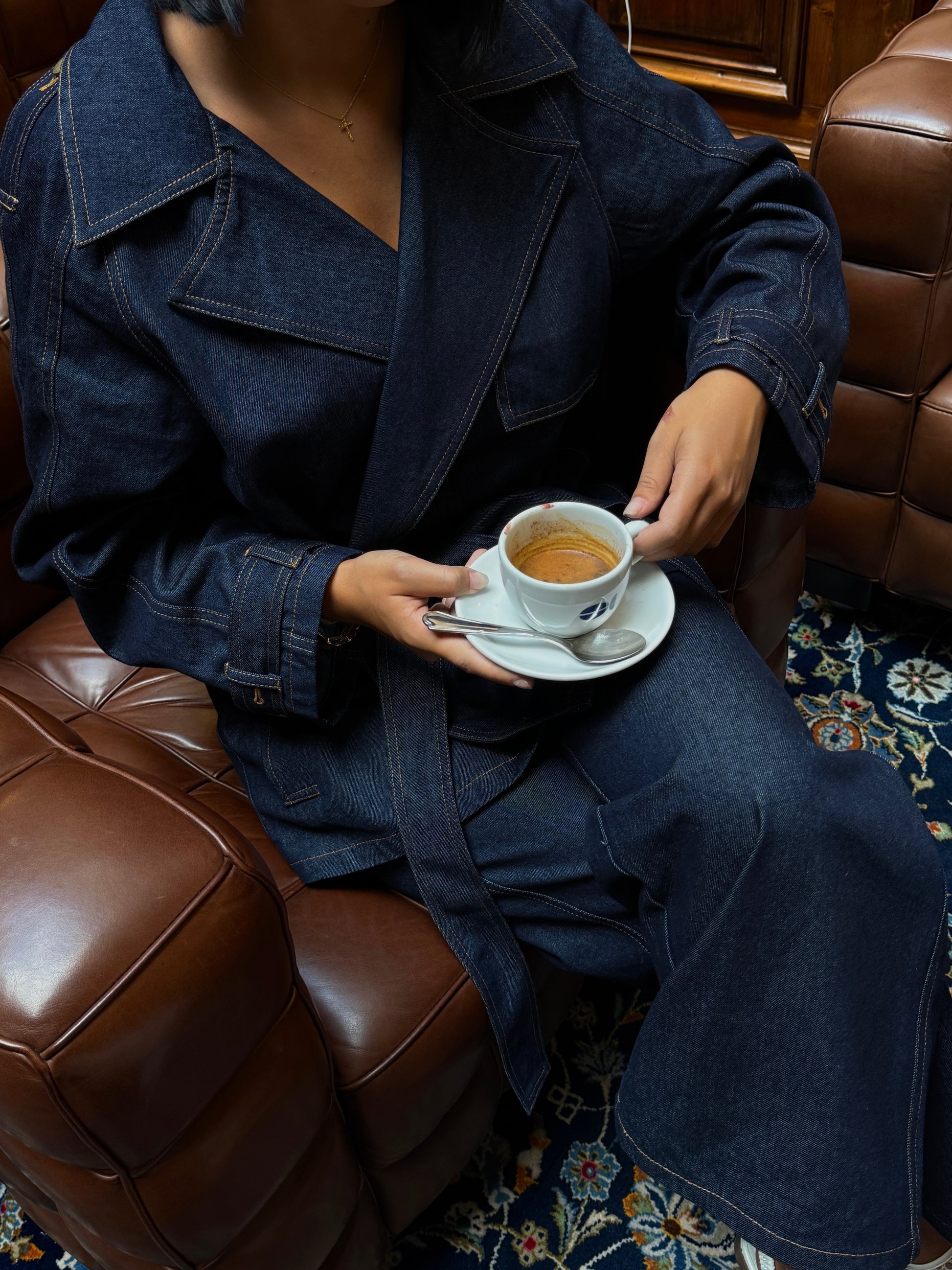 Komplet Denim Aura emanuje nowoczesną klasą dzięki głębokiemu, granatowemu denimowi i ponadczasowemu krojowi.