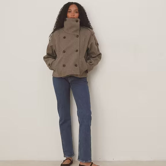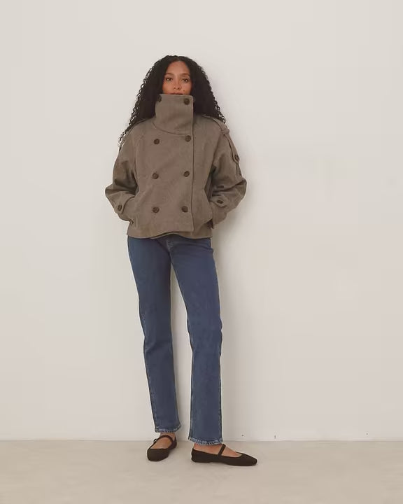 Krótki płaszcz, który emanuje niewymuszoną elegancją.