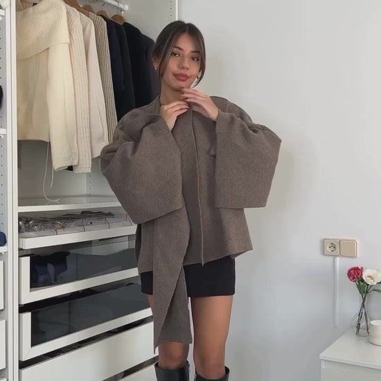 Noavé płaszcz otulający to idealne połączenie płaszcza i poncza – ciepły, stylowy i niezwykle miękki.